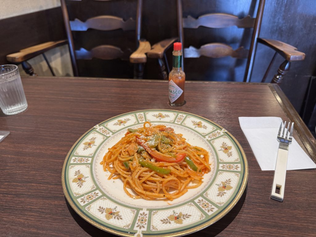 ナポリタン到着。分量は少なめなので大盛りにすれば良かったと後悔。