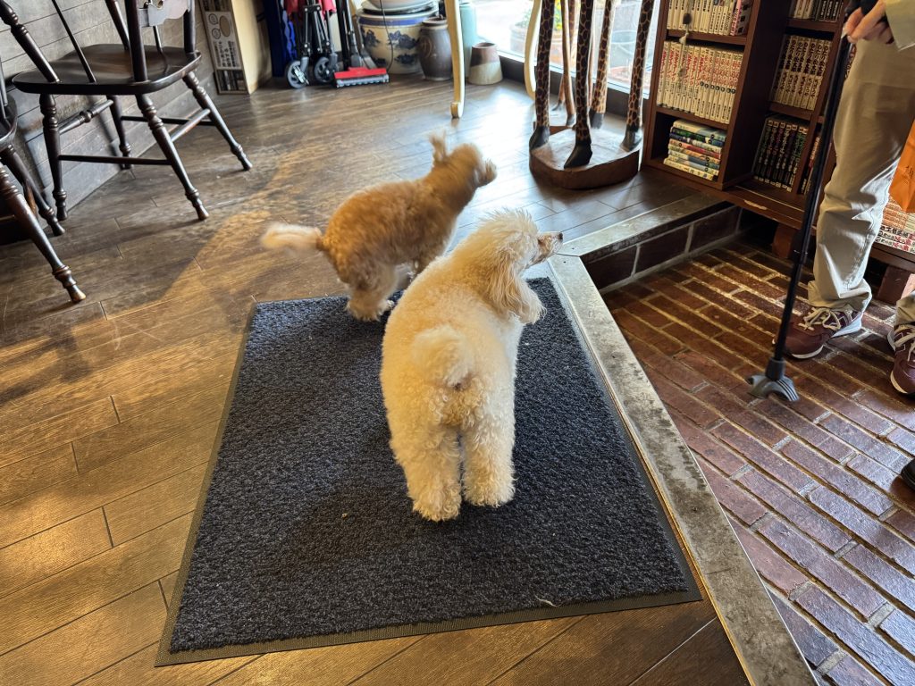 まず扉を開けると3匹のワンちゃんが熱烈歓迎してくれるシステムのようです。笑